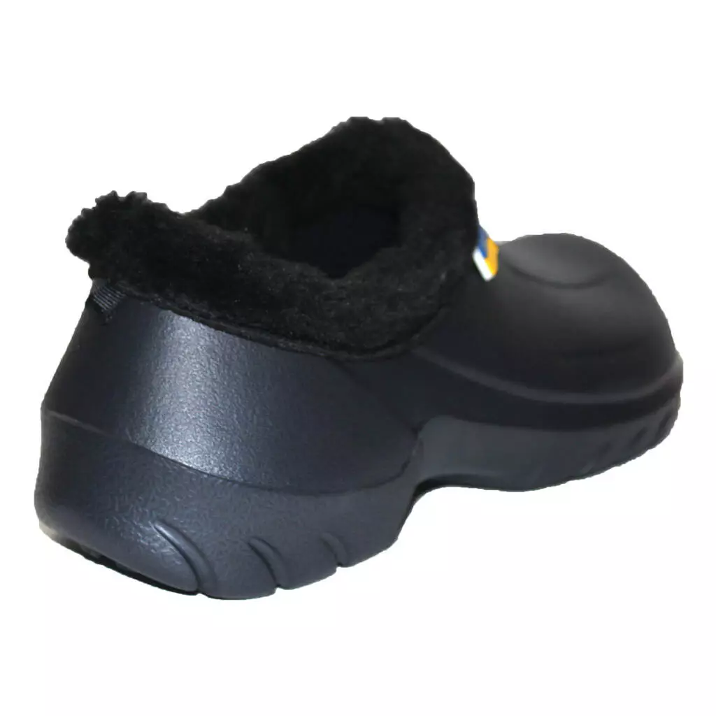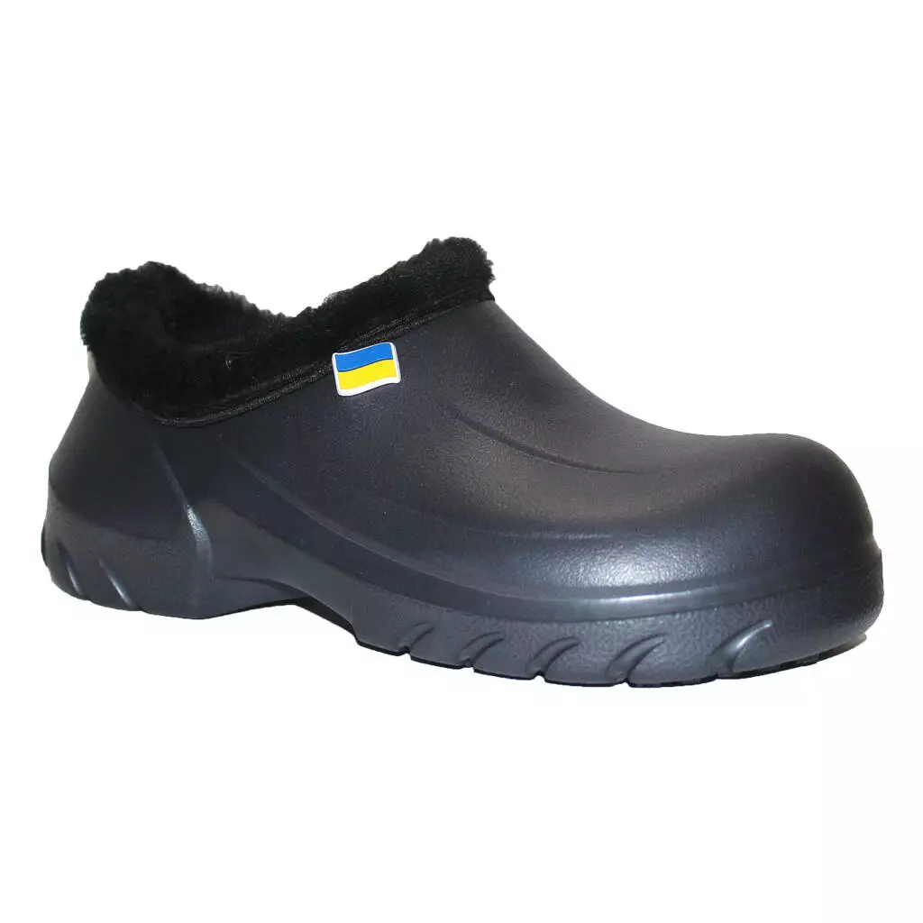 Чоловічі НАПІВОБШИТІ утеплені калоші - взуття на прохолодну дощову погоду і сльоту в осінньо-зимовий період. Калоші суцільнолиті, виготовлені з сучасного полімеру ЕВА. Край взуття обшитий штучним хутром, всередині знімна двошарова хутряна/повстяна устілка.