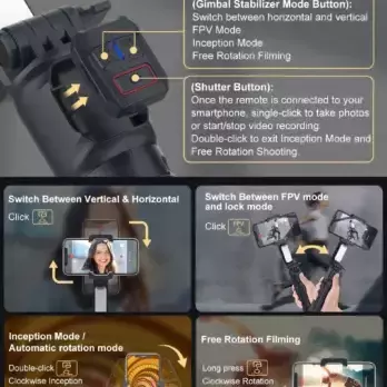 Перемикач двох режимів – перемикання між селфі-палицею та режимом стабілізатора