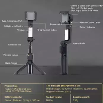 2-осьовий стабілізатор підвісу та селфі-палиця знімне підсвічування A10