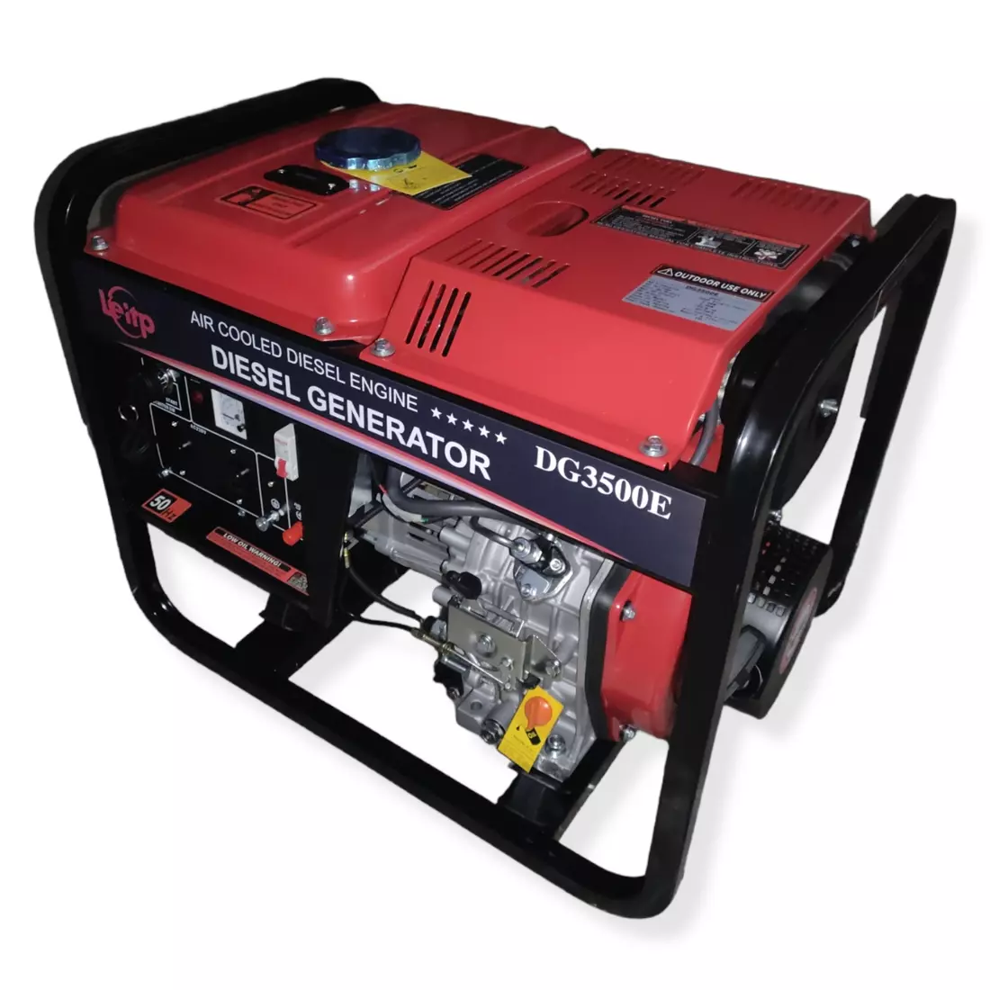 LeiTeng Power DG3500E – це однофазний портативний дизельний генератор струму, встановлений на трубчастій рамі для захисту та транспортування, який працює від чотиритактного дизельного двигуна з незалежним эл.запуском ключом. Використовується для додатків середньої інтенсивності як автономне джерело напруги живлення однофазного електрообладнання.