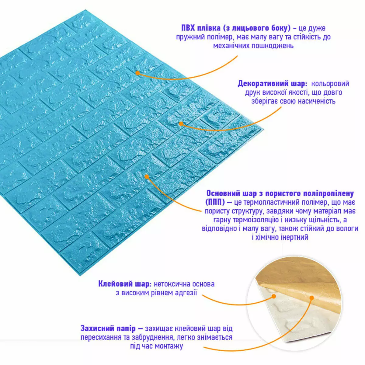 5. Захисний папір – оберігає клейовий шар від пересихання та забруднення, легко знімається під час монтажу.