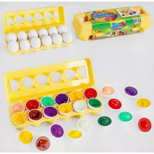 Ранній розвиток дитини неможливий без іграшок, що розвивають. Адже грати та вчитися так весело! Розвивальна іграшка “Яйця 3D сортер. Овочі та фрукти” допоможе розвинути у допитливого малюка спритність рук, дрібну моторику, а також навчать його комбінувати предмети за кольорами та формами! Особливості: - сучасний дизайн; - гармонійне поєднання кольорів; - усередині кожного яйця заховано 3D зображення овочів та фруктів; - серцевини пофарбовані в яскраві унікальні кольори; - компактна коробочка у вигляді лотка для яєць; - всі предмети у грі виконані із безпечного гіпоалергенного пластику.