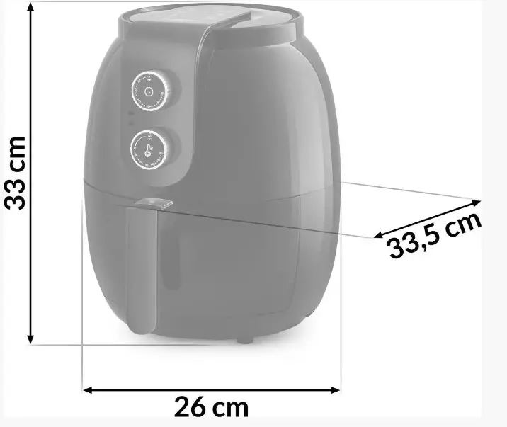 ▫ Ширина (з ручкою та виходом повітря): 33,5 см