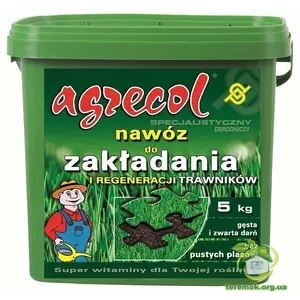 Agrecol для укладки и восстановление газонов - это очень эффективное, безопасное, специализированное удобрение, обеспечивающее быстрое прорастание новой травы. Специально разработан для регенерации ослабленного или поврежденного газона, а также предпосевной подготовки грунта для укладки газона.