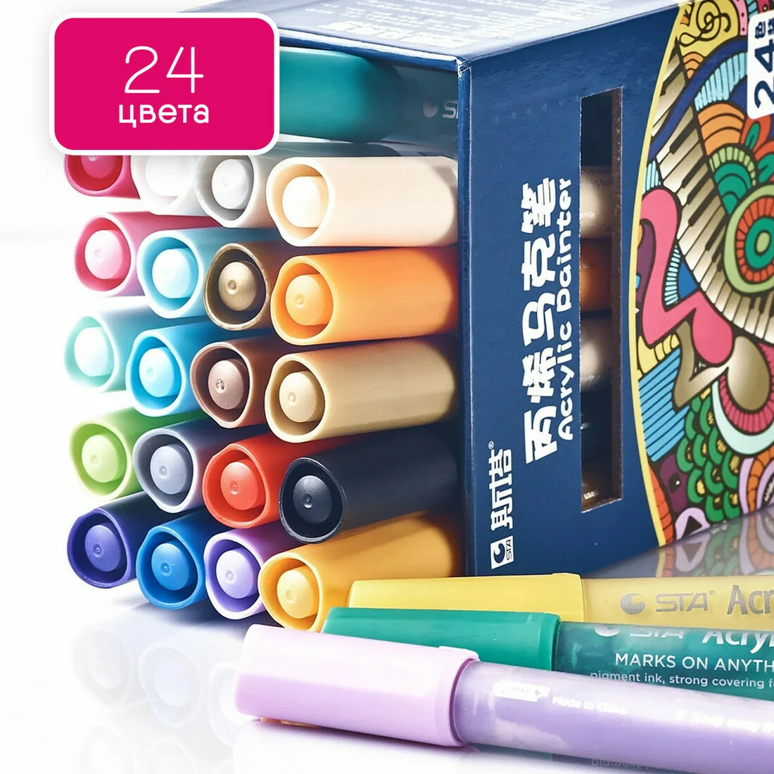 Палітра акрилових маркерів становить 24 кольорів. Кольорові