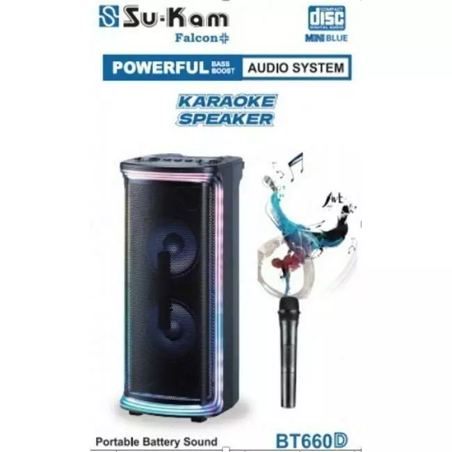 Акумуляторна Bluetooth колонка з бездротовим мікрофоном і пультом Su-Kam 660D/ 9735 RGB (1)