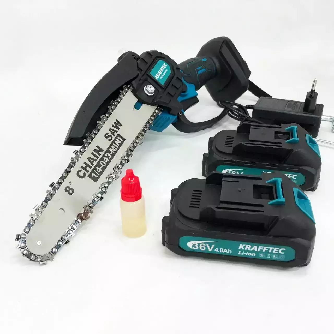 Акумуляторна ланцюгова міні пила Krafftec 36V/4Ah потужна та