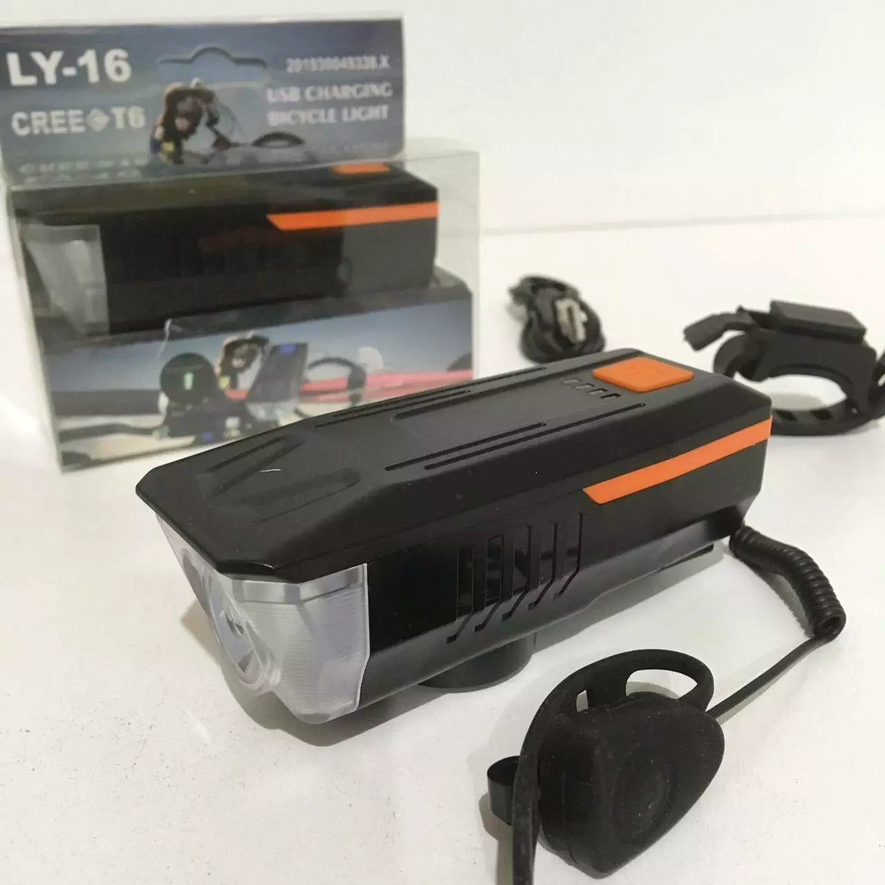 Велосипедний ліхтар велофара з дзвінком UKC USB CREE T6 LY-16 стане