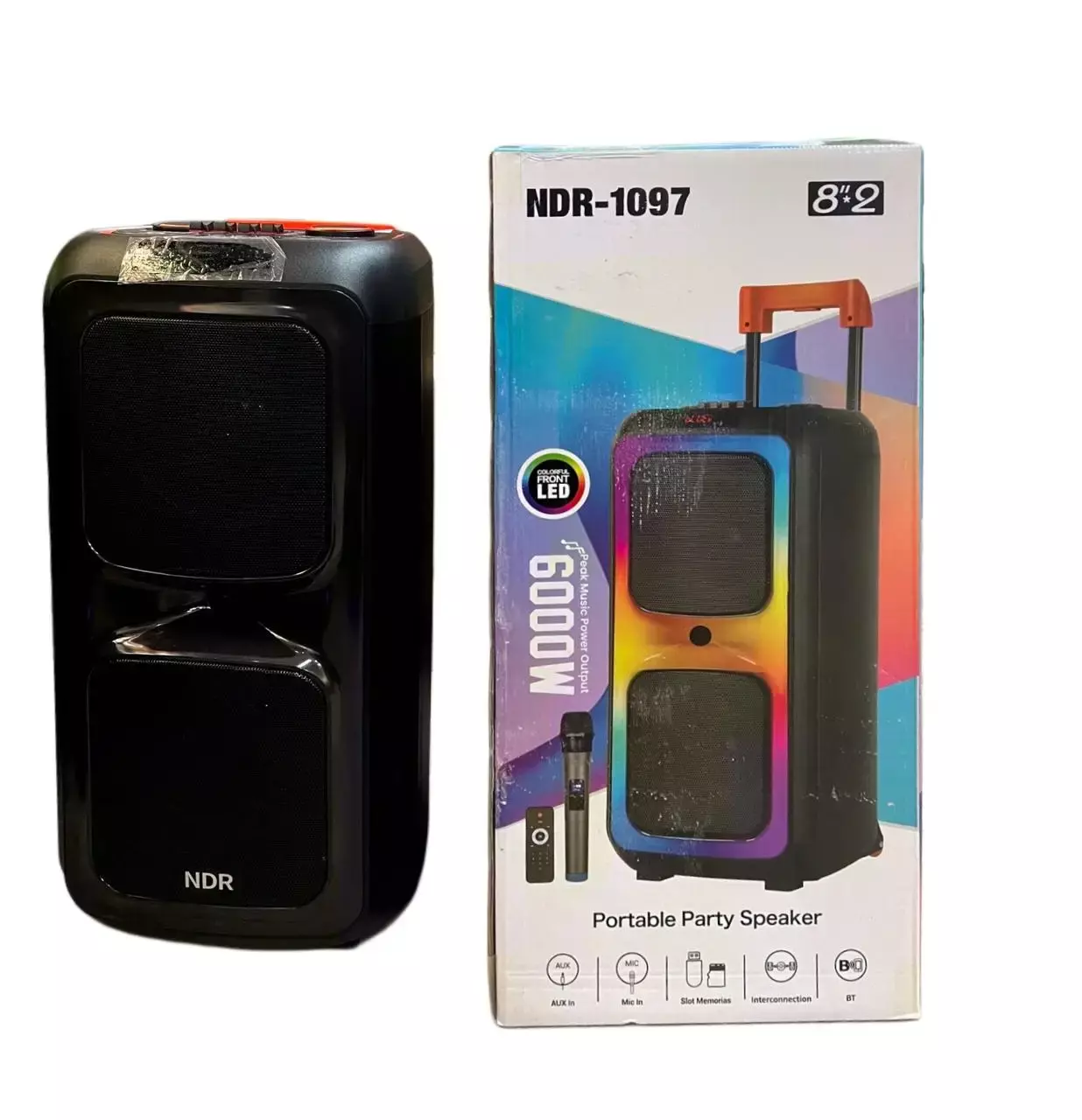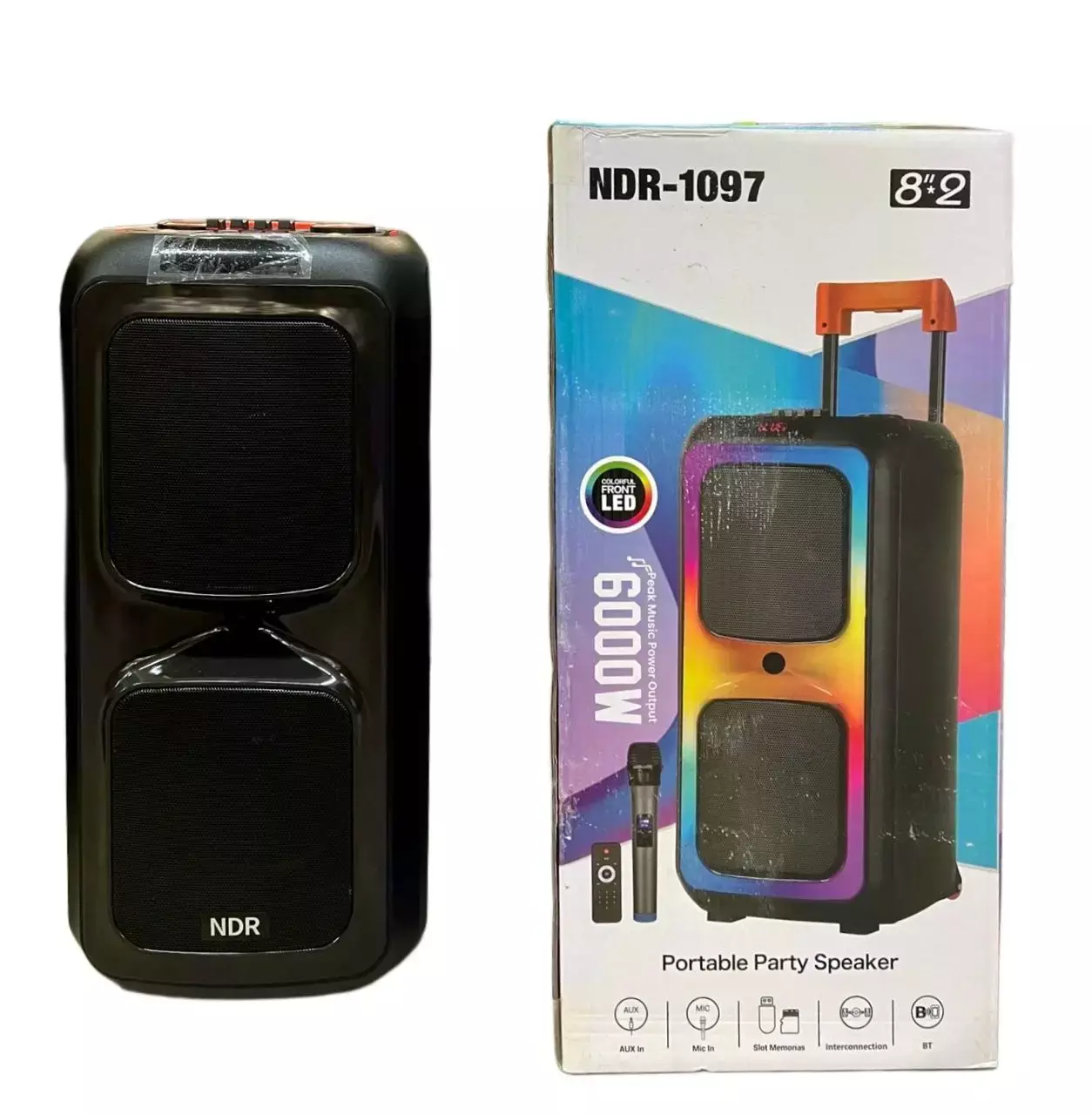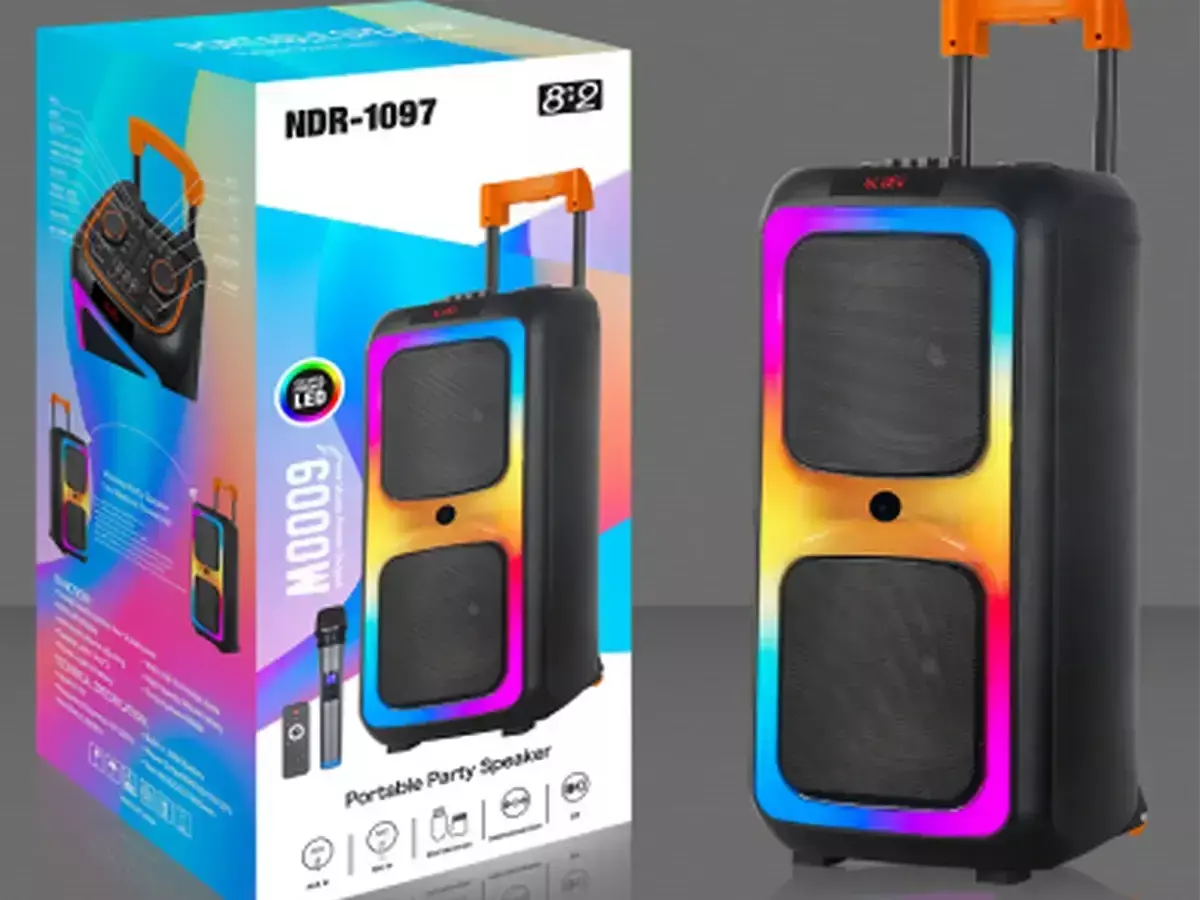 Акустична переносна колонка NDR-1097/ 6434 2x8" TWS/FM/USB/TF/BT/LED/REC/ДК/MIC (1)