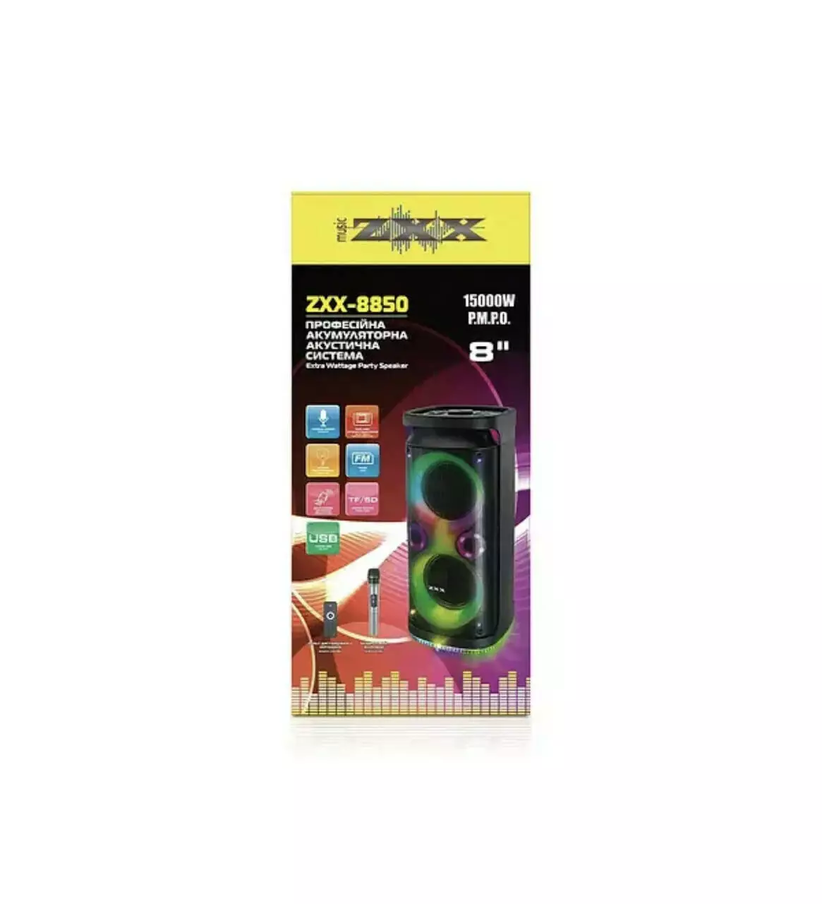 Акустична переносна колонка ZXX-8850/ 6733 60Вт 8" 71х33х31см USB/TF/FM/BT/MIC (1)