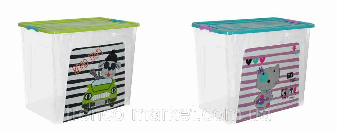Объем емкости для хранения - 27 литров,  вместительный. Яркие насыщенные цвета, удобная крышка. Декор Pet Shop  - "животные"  и Car " машинки" является наклейкой  IML , которая проливается вместе с основной формой, что гарантирует ей долгожительство :) Не стирается и не отрывается.