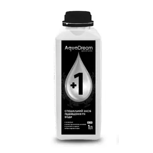 AquaDream +1 спеціальний рідкий засіб призначений для підвищення кислотно-лужного балансу води в басейні до рівня 6.7 – 7.4. Рекомендовано використовувати препарат при значенні рН нижче 6.7. Вода з оптимальним рівнем рН збільшує ефективність засобів для обробки води. Рідка консистенція дозволяє використовувати засіб як для ручного, так і для автоматичного дозування (за допомогою насосів-дозаторів). Сумісний с хлорною та безхлорною хімією.