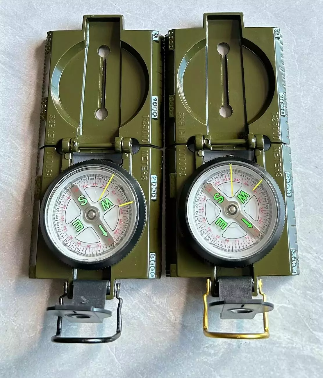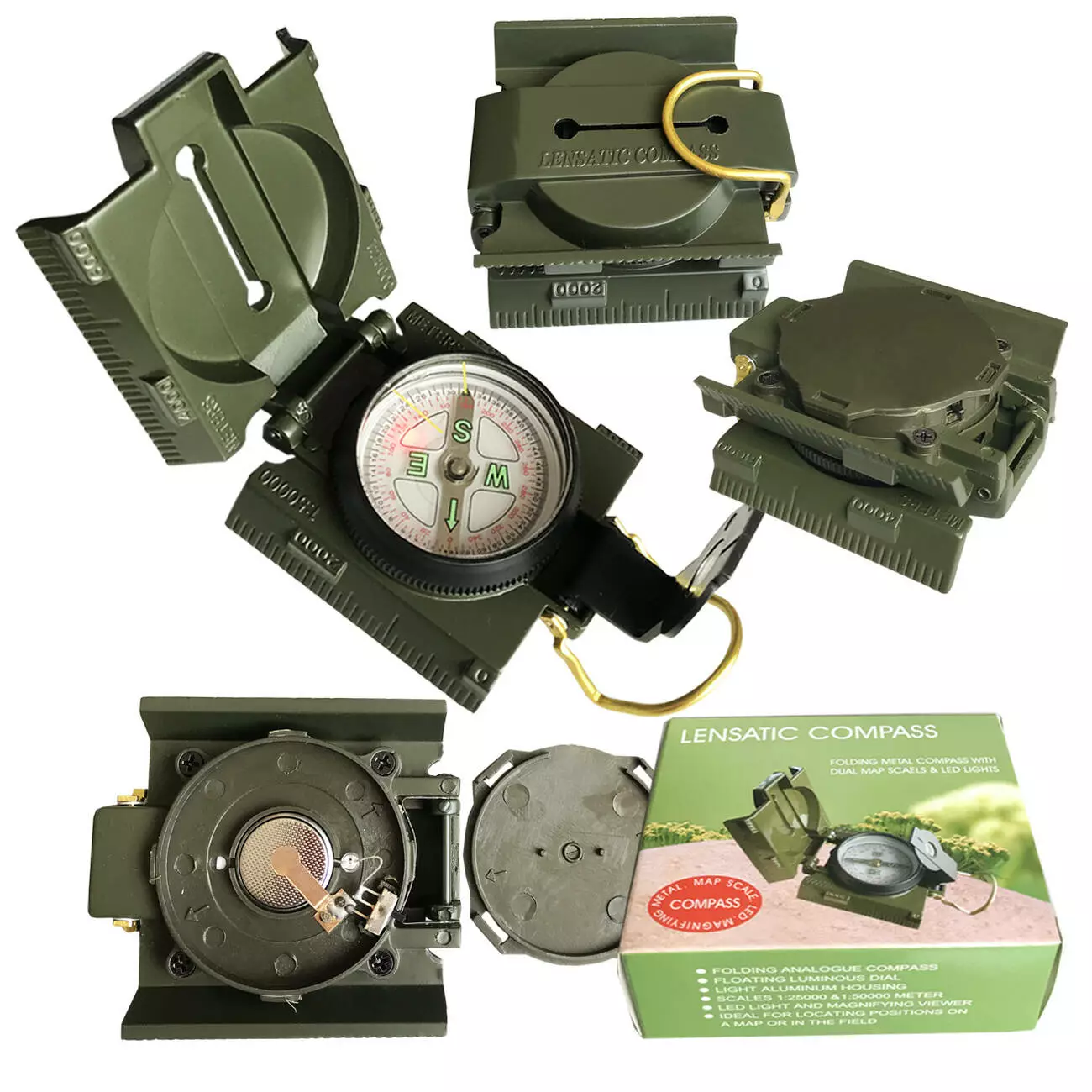 Складной металлический компас с LED-подсветкой и двойными шкалами