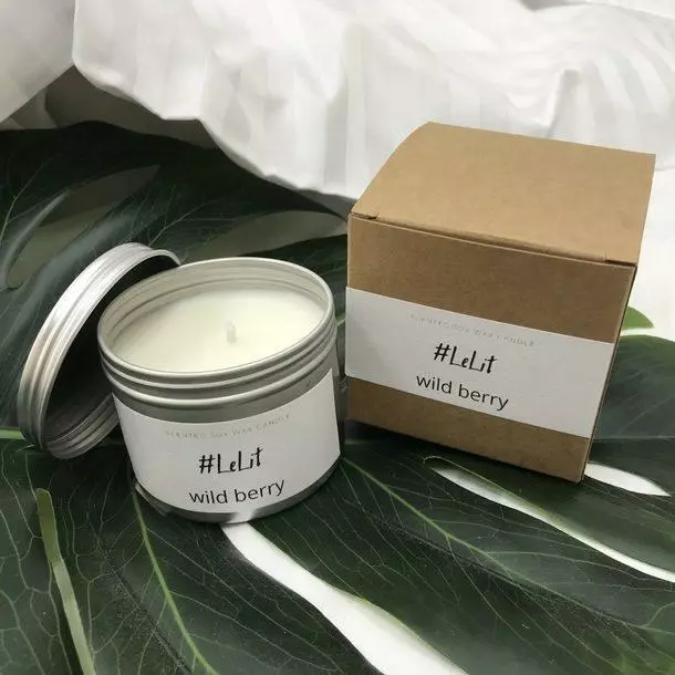 Аромасвеча в металлической банке LeLit Wild Berry с предсказанием  для дома/для спальни/для ванной/для массажа. Ручная работа.