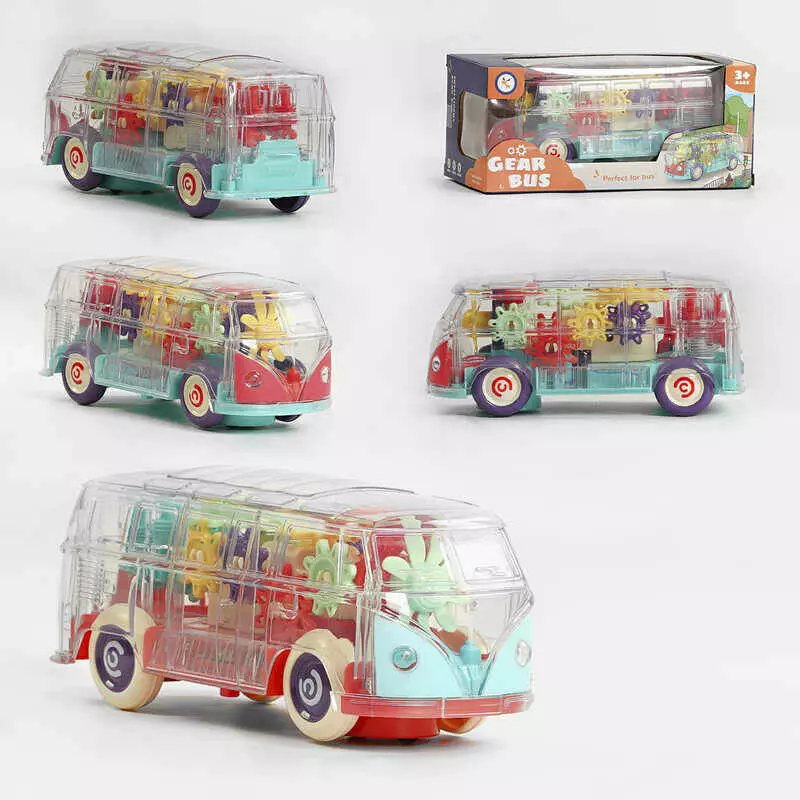 Автобус KL 1509 (72/2) 2 види, рухливі шестерні, колесо вільного ходу, світло, звук, на батарейках, в коробці