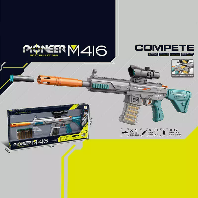 Home > Catalog > Toys > Toy weapons > Автомат 826 A (12) механічний принцип роботи, довжина 71 см, 10 м’яких патронів, 6 гільз, приціл, в коробці wholesale