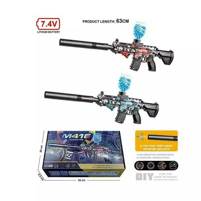 Автомат LYM 015 B 3-5 (48/2) 2 кольори, акумулятор 7,4V, автоматичний та механічний принципи роботи, стріляє орбізами, магазин та глушник, в коробці