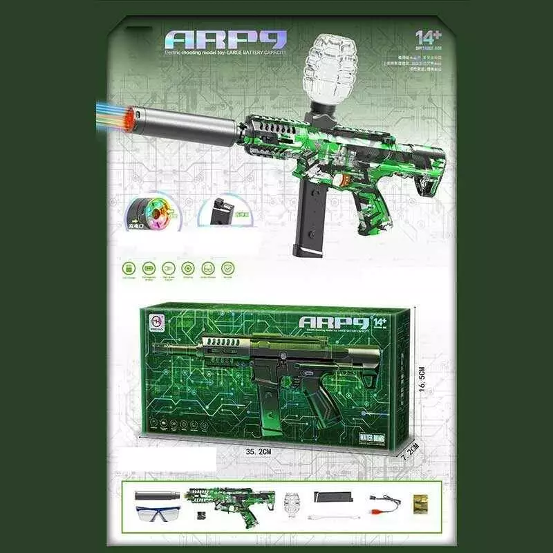 Автомат MH 7055 (36) вбудований акумулятор, стріляє орбізами, глушник з підсвічуванням, магазин, захисні окуляри, в коробці