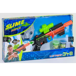 Автомат СН 348 стане чудовим подарунком для хлопчиків. Особливістю даного автомата стало те, що він стріляє не звичайна кульками на присосках або водними кулями, а Лизун! Заливаємо Лизуна в спеціальний відсік і в бій! Дальність пострілу близько 5 м. Набір додатково комплектується маскою, мішенню і двома резервуарами з слайм (приблизно 500 пострілів).