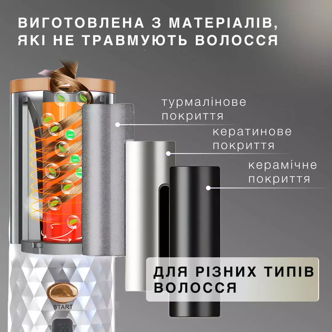 Автоматична плойка-стайлер - інноваційний пристрій, який ідеально підійде для тих, хто любить зачіски з локонами. Апарат сам захоплює пасмо волосся та формує завиток, при цьому передбачена функція автоматичного зворотного обертання, що запобігає сплутуванню волосся. Для користування стайлером не потрібні особливі навички, проста і зручна бездротова конструкція дає можливість брати його з собою в поїздки та подорожі.