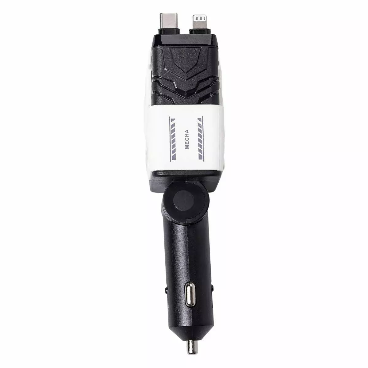 Дизайн пристрою розроблений для максимальної зручності користувача. Вбудований висувний кабель довжиною 75 см оснащений автонамотуванням, що дозволяє підтримувати порядок у салоні автомобіля. Поворотний механізм на 180° забезпечує комфортне розташування зарядного пристрою, навіть у важкодоступних місцях. Корпус виготовлений із міцного полікарбонату, що гарантує надійність і довговічність.