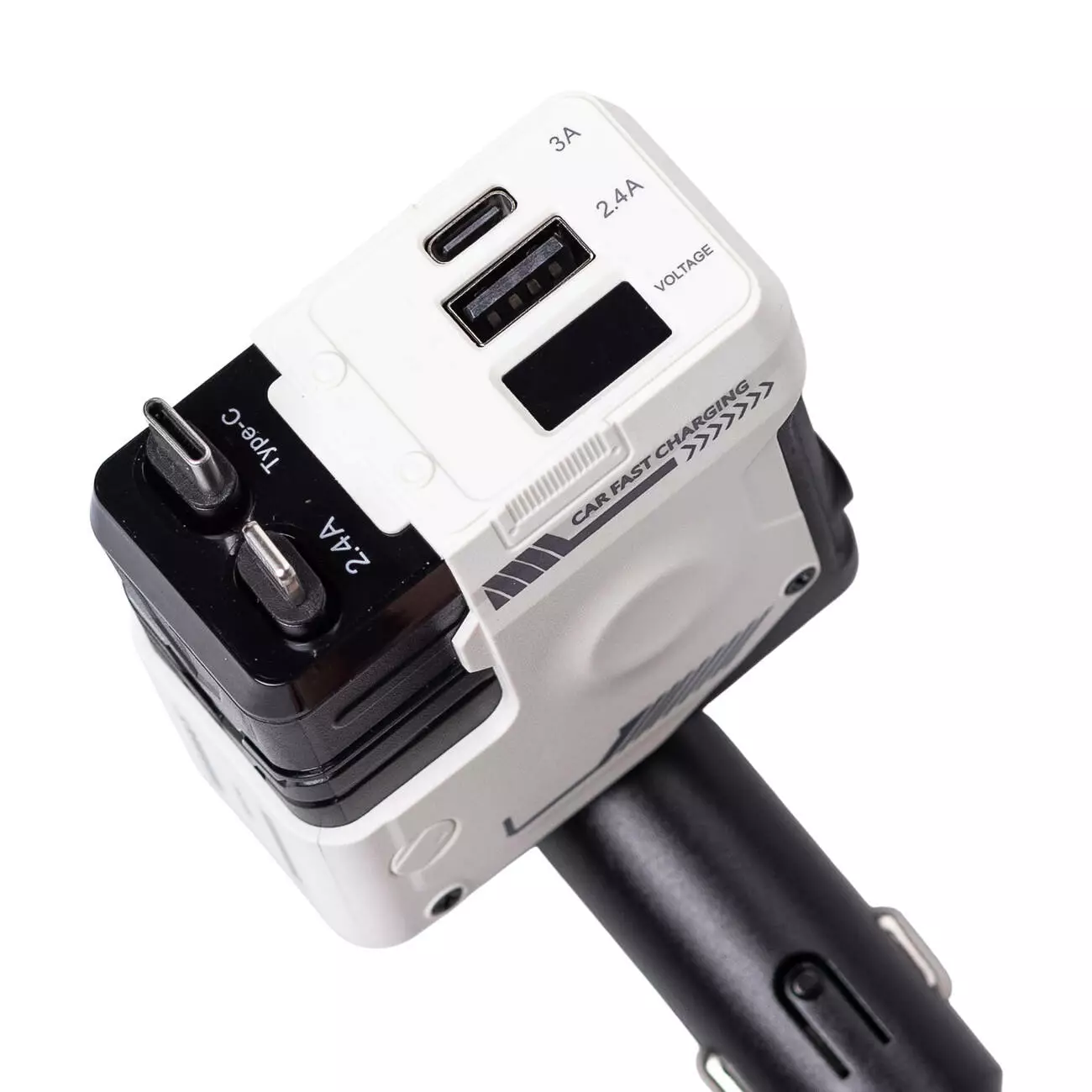 Автомобільний зарядний пристрій 4 в 1 з висувним кабелем, білий