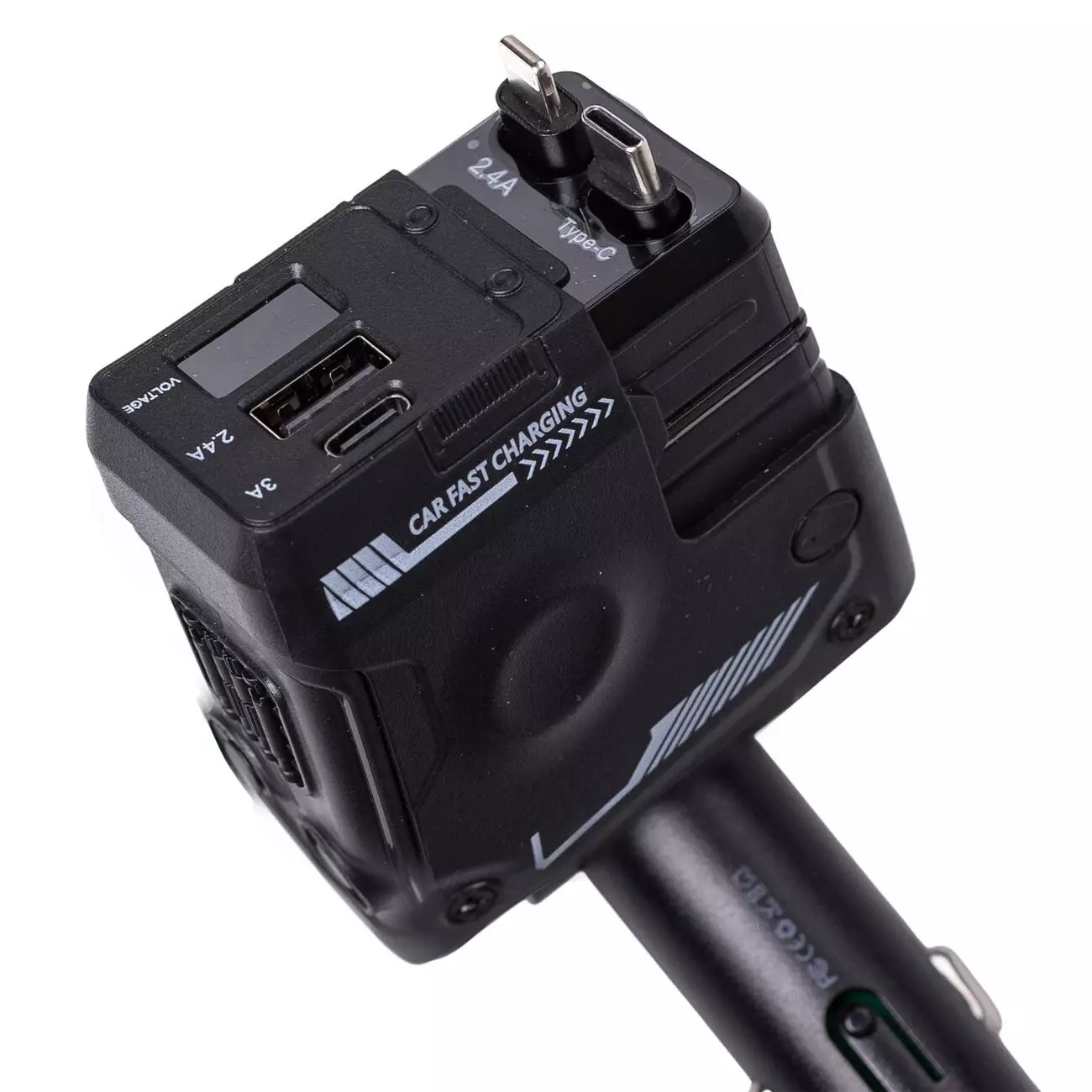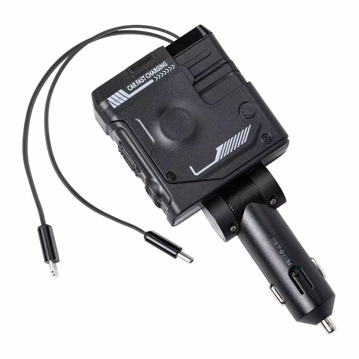 Автомобільний зарядний пристрій 4 в 1 з висувним кабелем, чорний