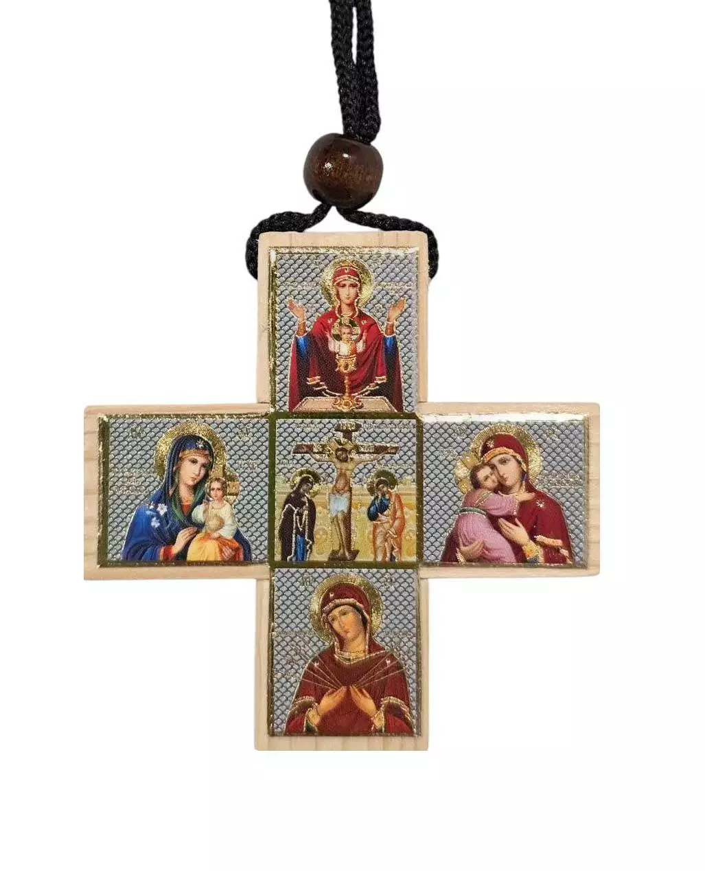 Автопідвіска з ликами святих хрест дерево 6,5*6,5 см
