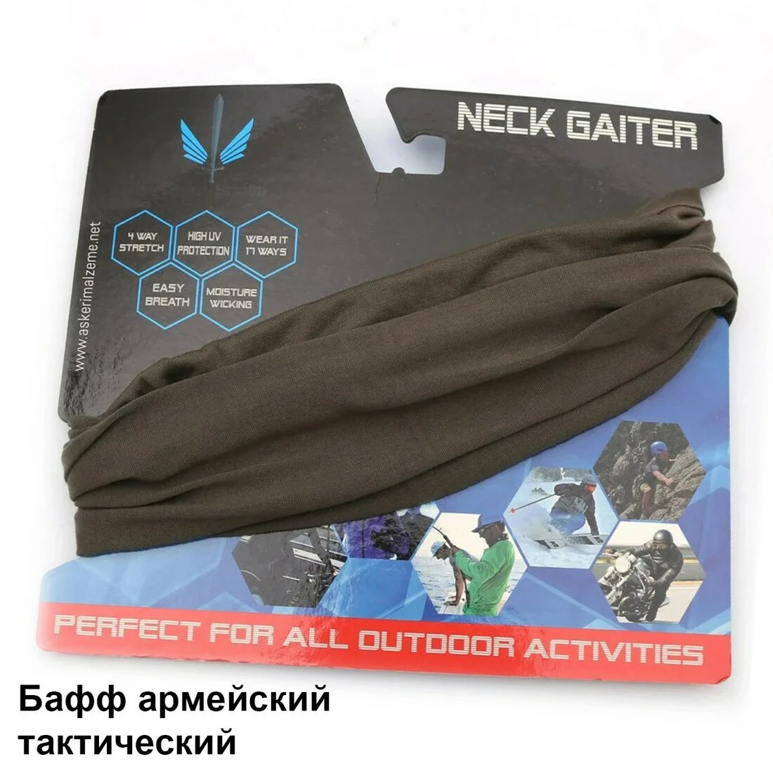 Бафф трубовидной формы защищает шею и лицо от ветра и пыли.
