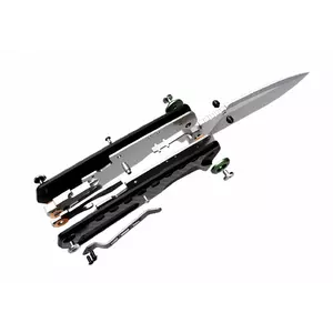 Утримувати інструмент легко, він ергономічний і простий в експлуатації. Всі складові частини міцні і надійні, і застосовувати такий мультиінструмент буде безпечно. Легко розкладається, компактно складається. Практичний чорний колір. Рукоять виготовлена з таких матеріалів, як: скловолокно, вуглецеве волокно, епоксидна смола. Це стійкі до зносу і міцні компоненти. Багатофункціональний ніж прослужить вам довго, і буде виконувати роботу без нарікань. Рукоять має виїмку для більш зручного захоплення.
