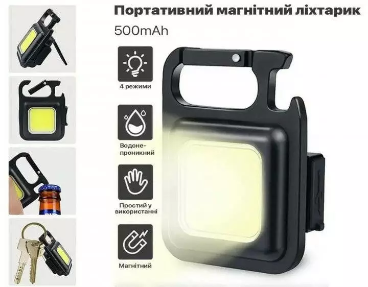 - Аккуляторный фонарь карабин - (500mAh, магнит, брелок,