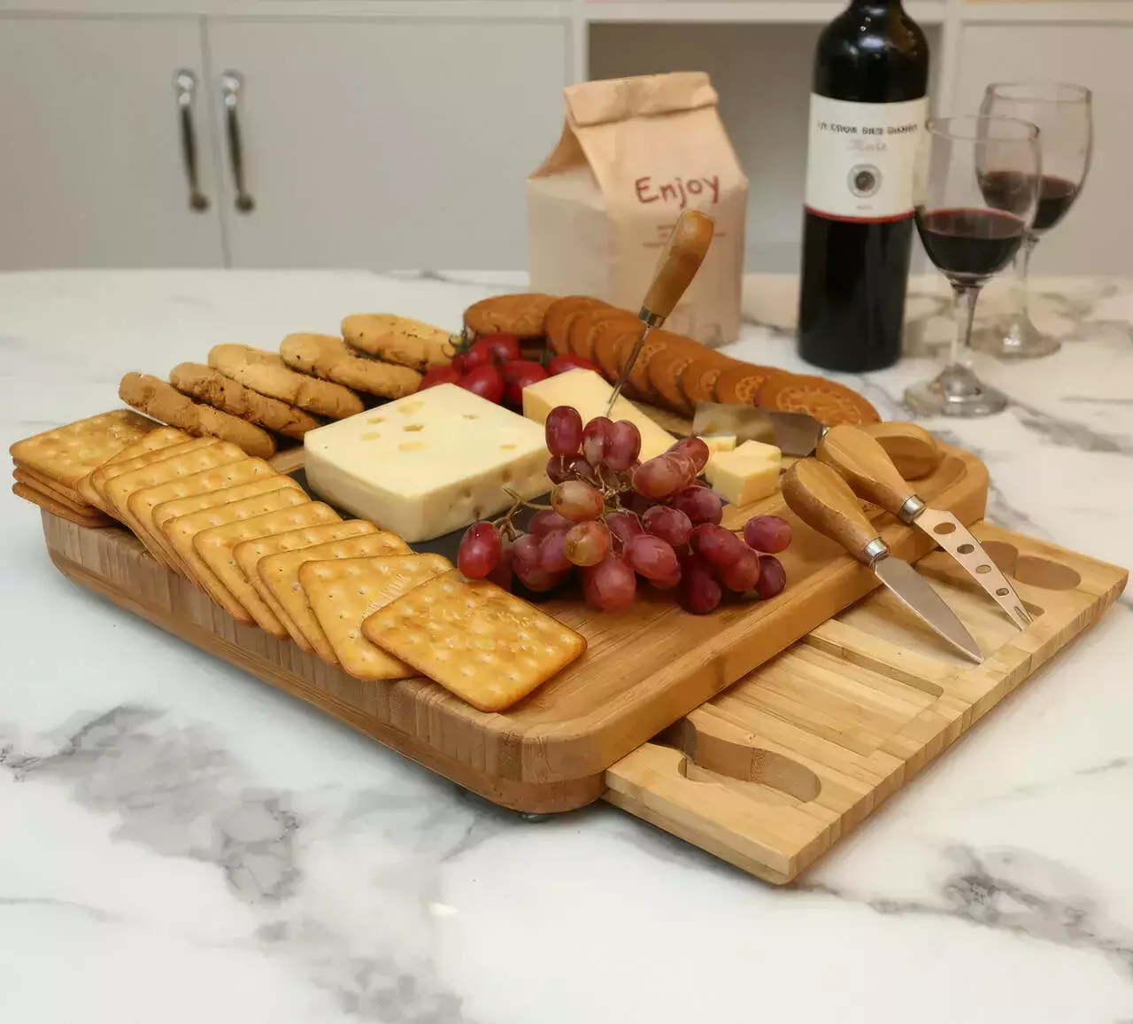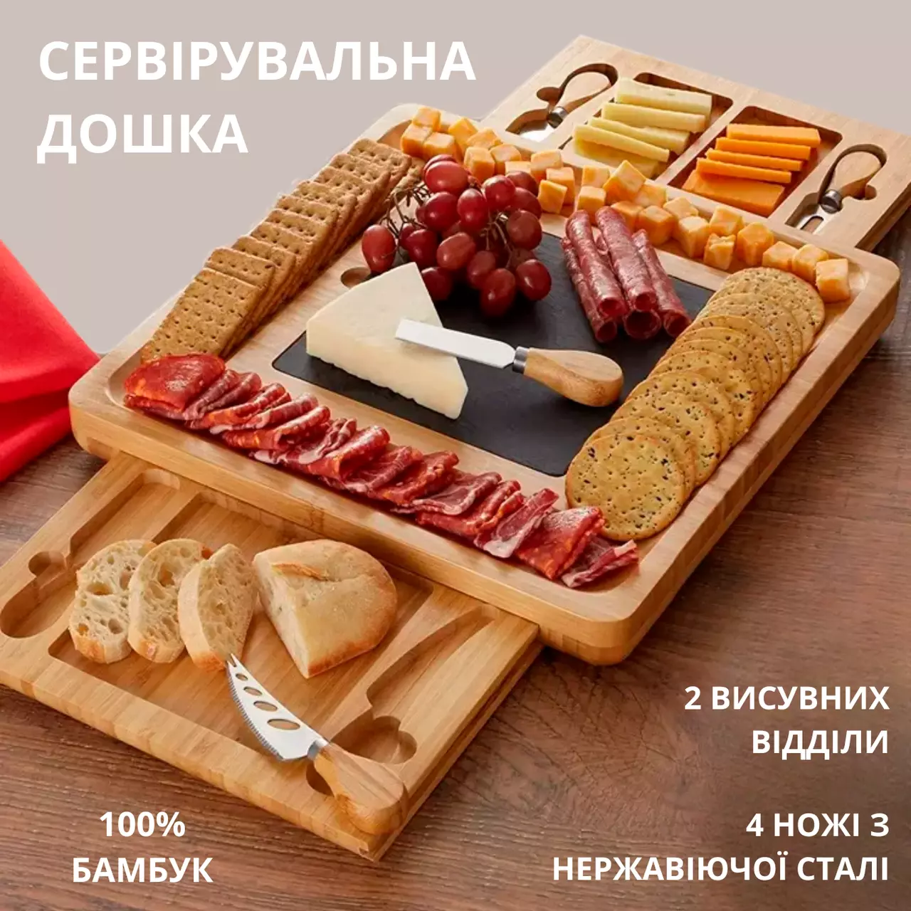 сыра, фруктов и закусок, которые удобно хранятся в выдвижном