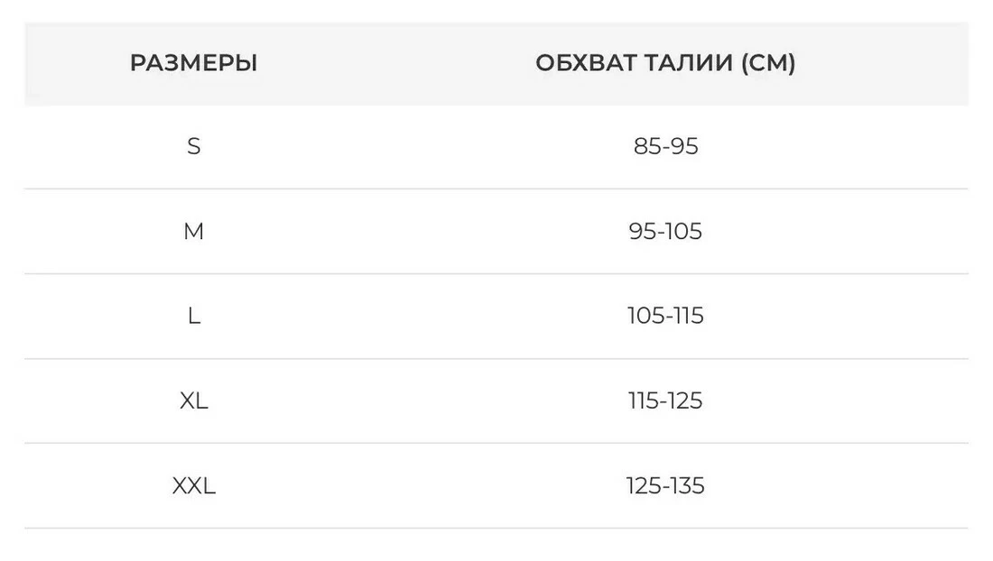 РОЗМІРИ ОБХВАТ ТАЛІЇ (CM)