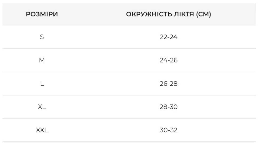 РОЗМІРИ ОКРУЖНІСТЬ ЛІКТЯ (CM)