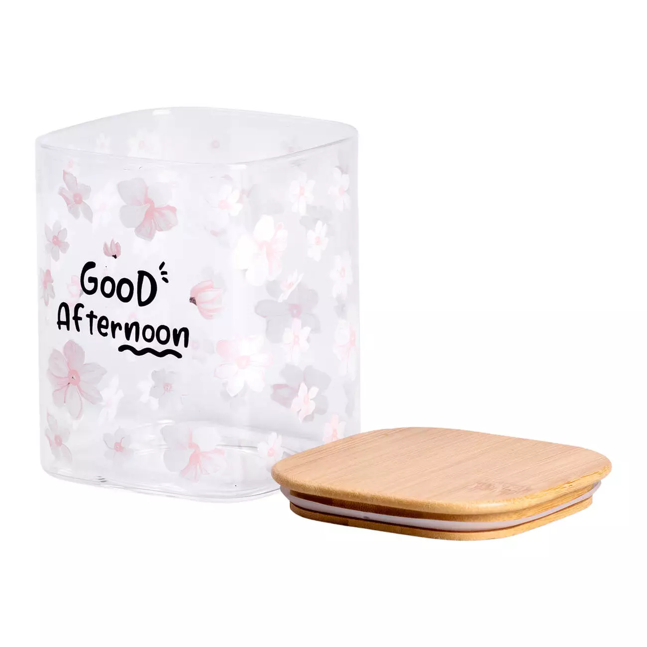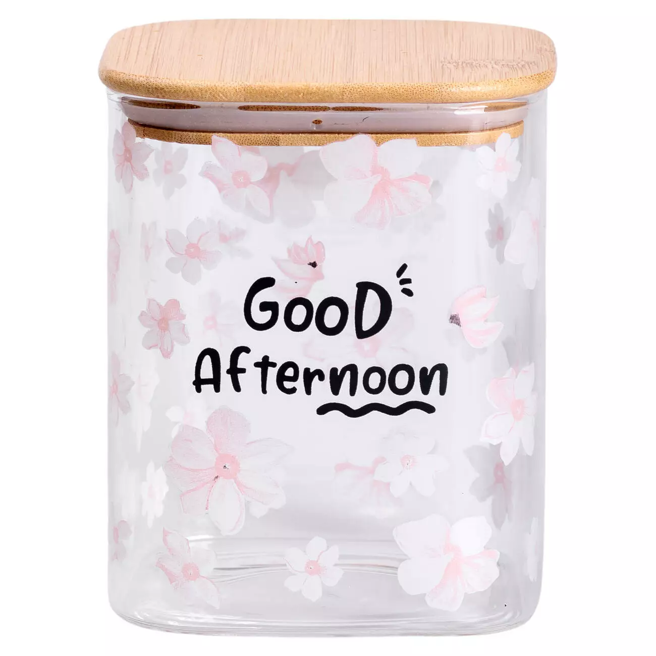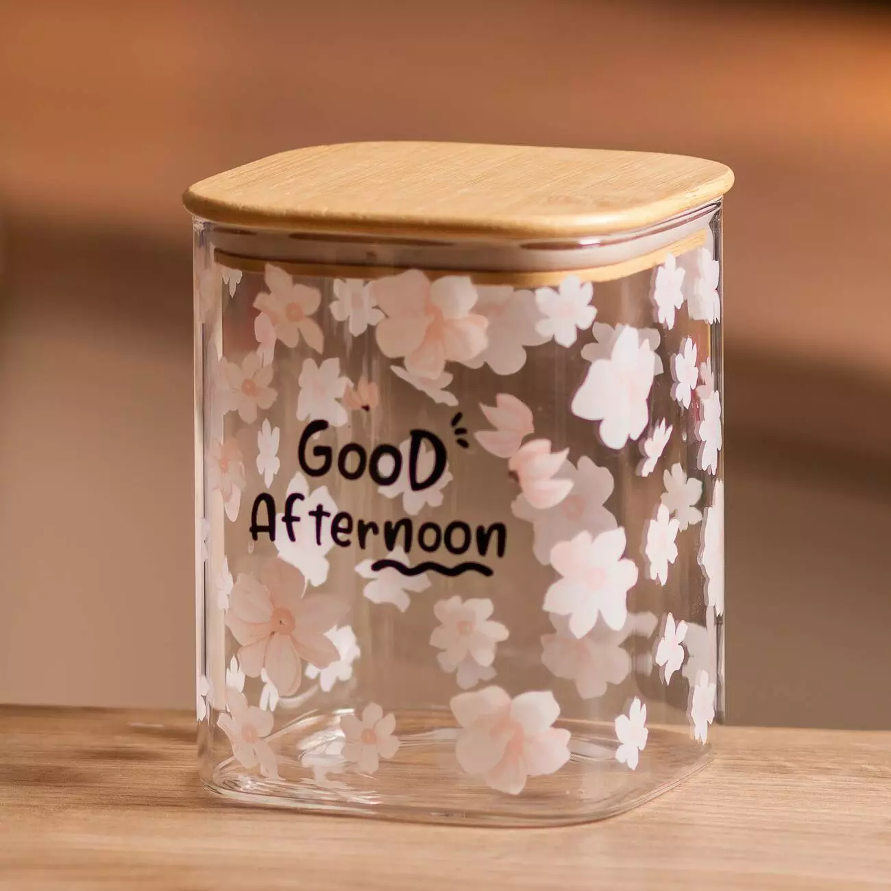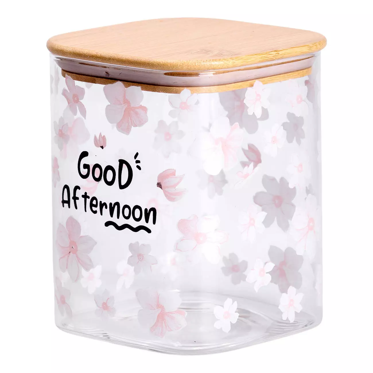 Дизайн банки відрізняється приємною ноткою витонченості та лаконічності: прозоре скло прикрашене ніжним принтом із квіточок сакури, що створює легку та затишну атмосферу на вашій кухні.