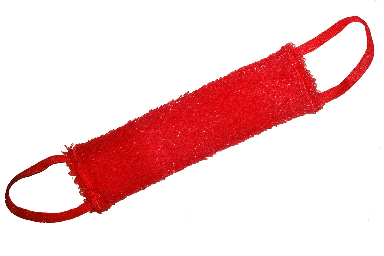 Мочалка банна Люкс Макс з ручками. Мочалка банна «Люкс Макс» має ручки з обох боків, завдяки яким використання стає легким та не потребує допомоги. Ви можете самі потерти спину або зробити відмінний масаж, який надасть шкірі більш гладкого вигляду, позбавить відмерлих частинок і покращить мікроциркуляцію.