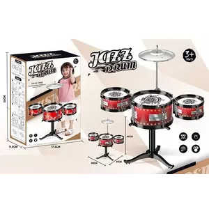 “Jazz Drum” - неймовірна барабанна установка, про яку мріє кожен маленький музикант. Ідеальний комплект з 3-х барабанів з різним звучанням та тарілки стане чудовим подарунком для дитини, яка обожнює цей вид музичних інструментів. Особливості: - у наборі представлені 3 барабани та тарілка; - діаметр маленьких барабанів - 11 см; - діаметр великого барабана - 16 см; - діаметр тарілки - 14 см; - габарити установки: 40х46 см; - барабанні палички у комплекті.