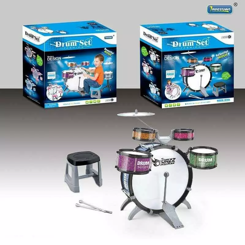 Home > Catalog > Toys > Toy musical instruments > Барабанна установка L 552 (12) стільчик, 4 барабани, 1 барабан із педаллю, 2 палички, 1 металевий диск, в коробці wholesale