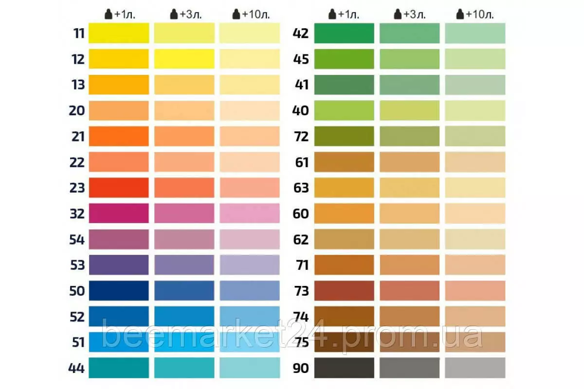не більше ніж 1 упаковка пігменту на 1 л фарби (не більше 10%).