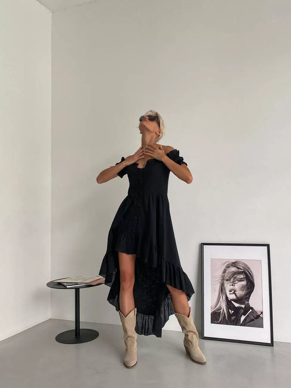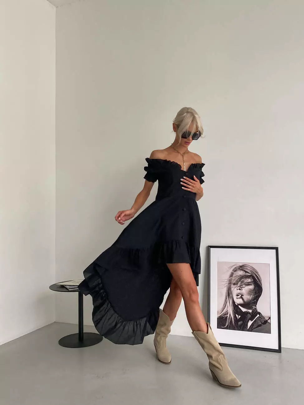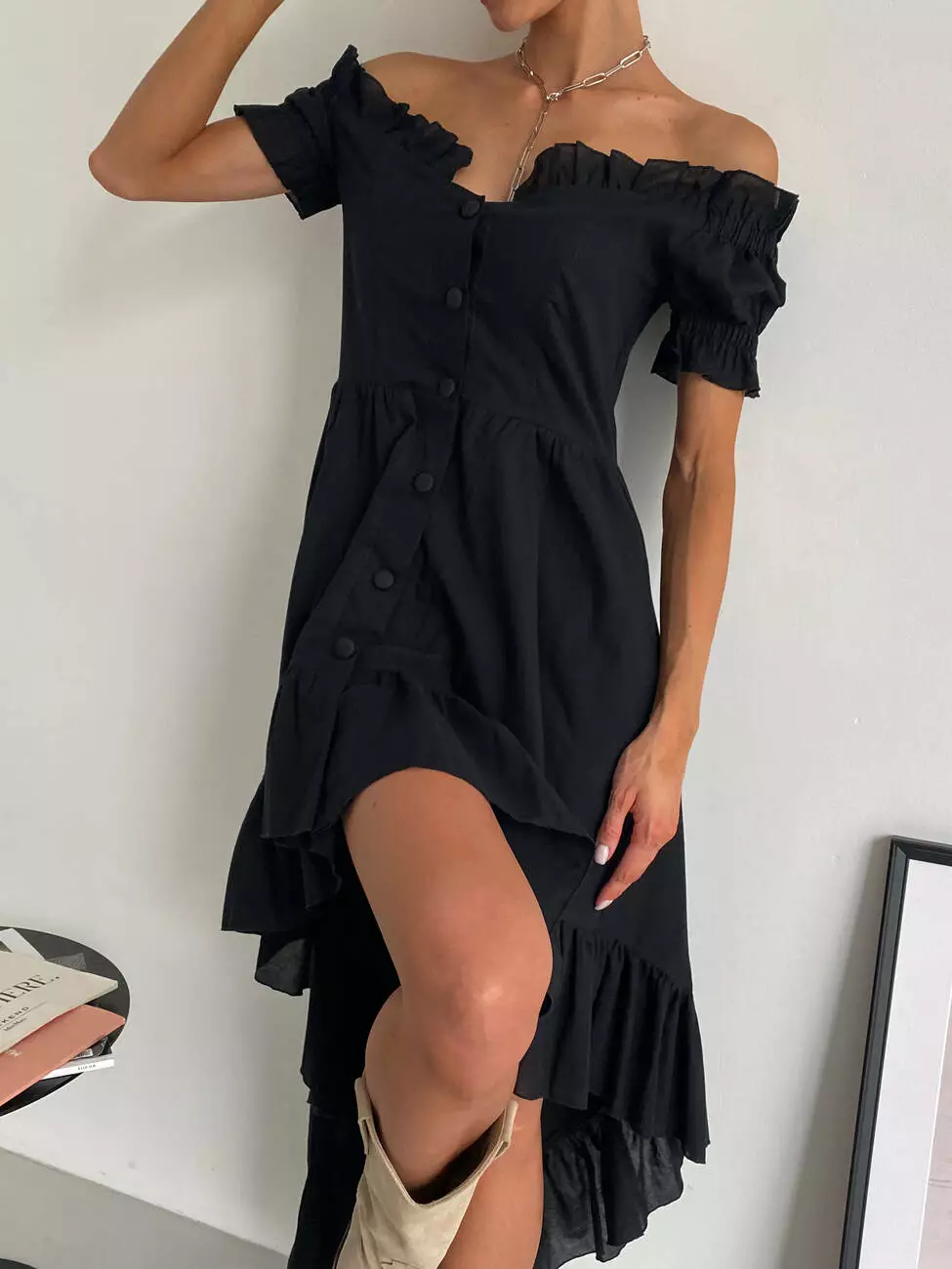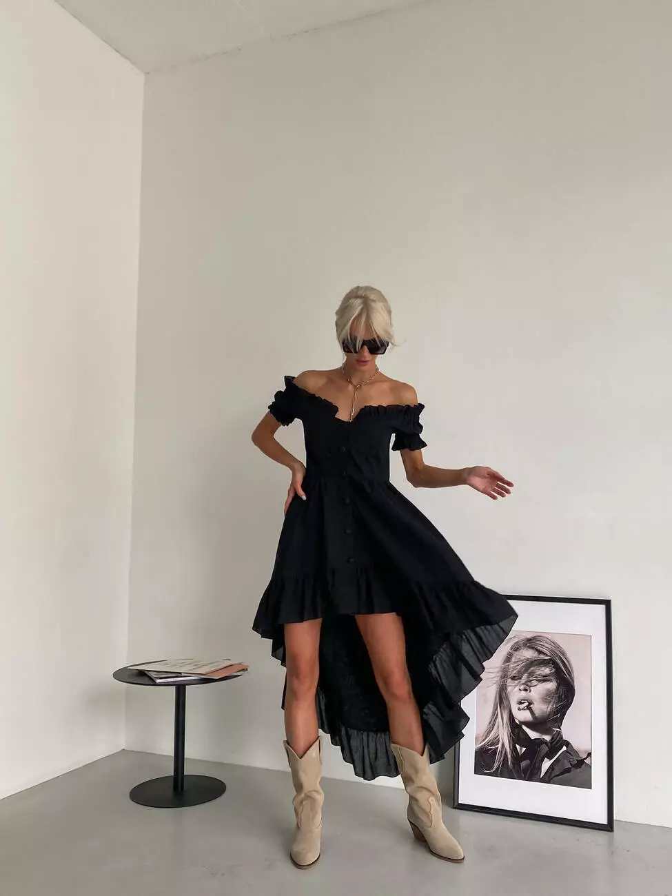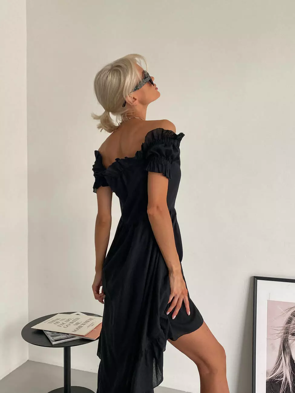 Бавовняна ніжна сукня MIRANDA з відкритими плечима чорного кольору