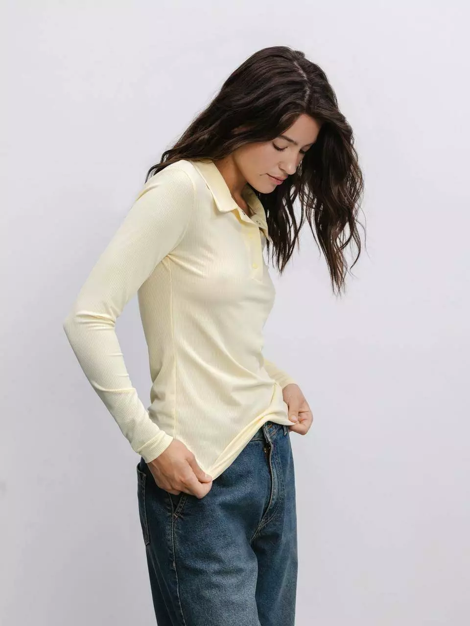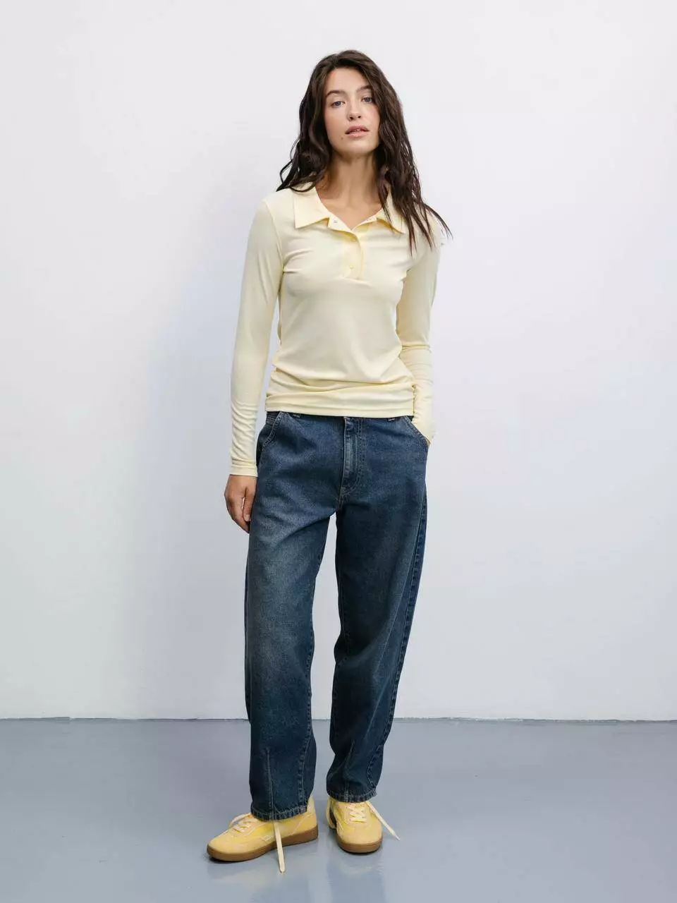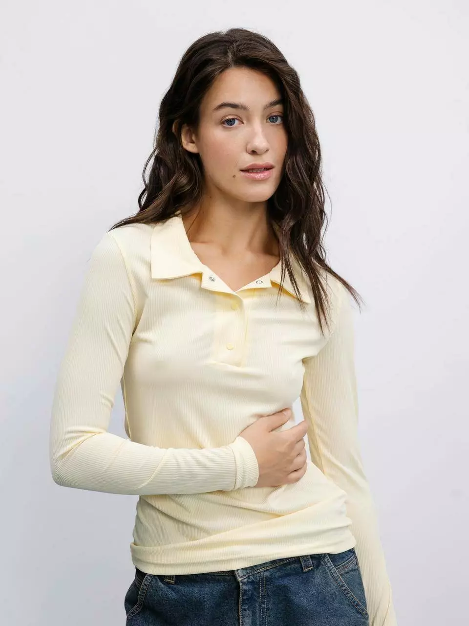 Ця базова футболка з комірцем-поло в ніжно-жовтому кольорі –