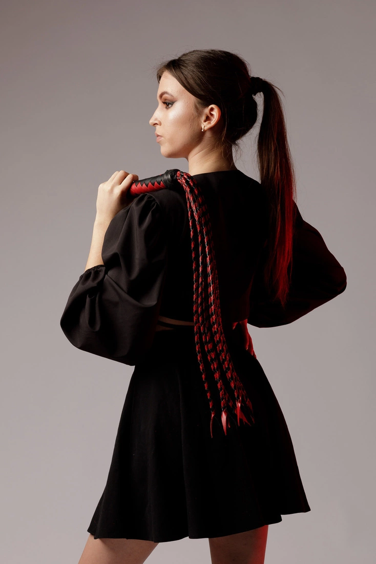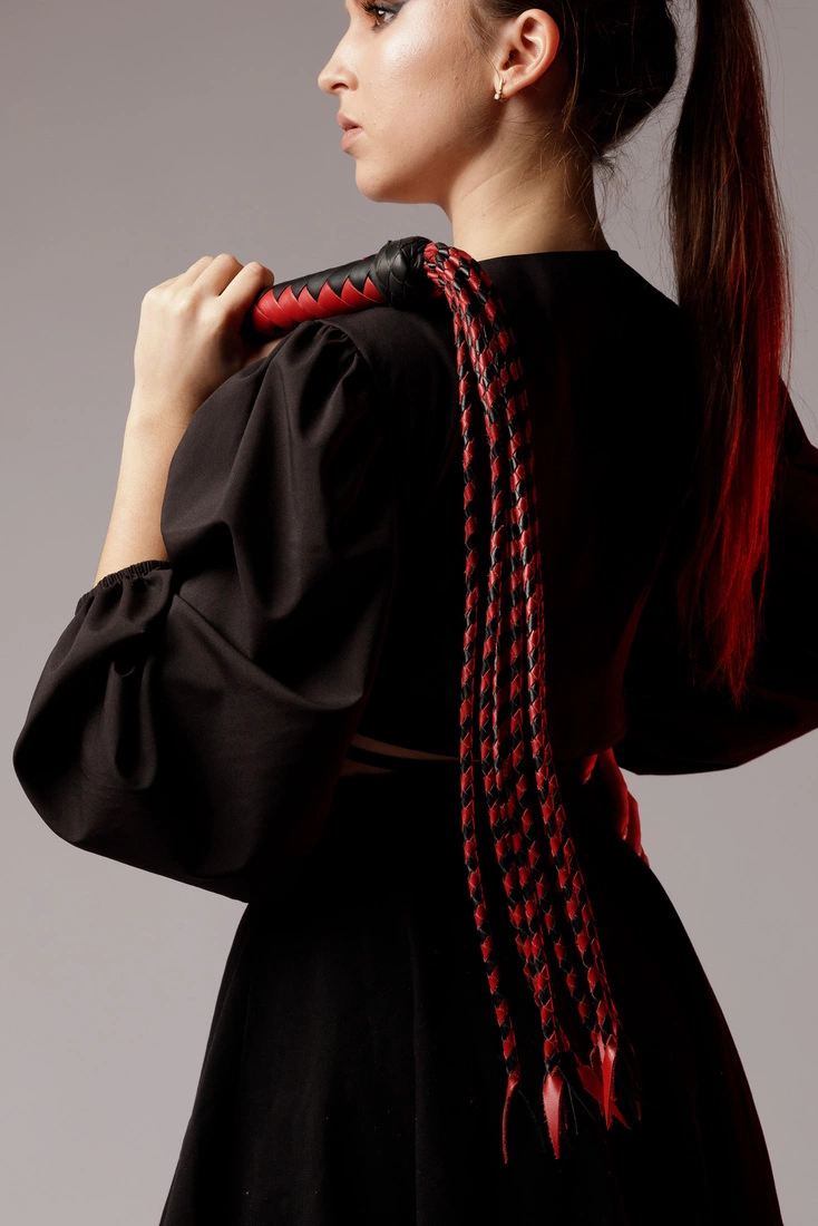 БДСМ Пльотка Кішка, 9 хвостів, БДСМ батіг червоно-чорний плетений