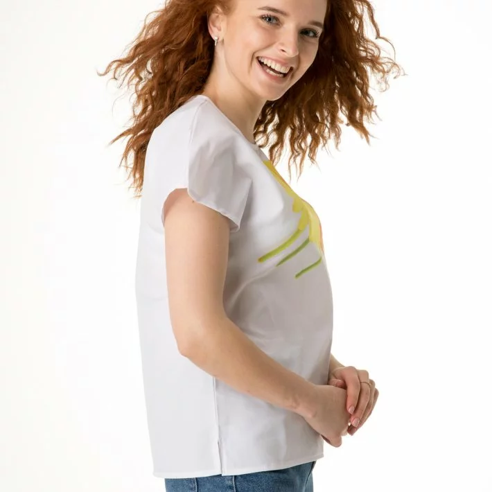 Блуза-футболка зі спущеним плечем ідеальний вибір під джинси або