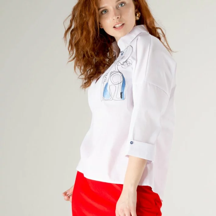 горловиною і рукавом 3/4 оформлена вишивкою і декоративними