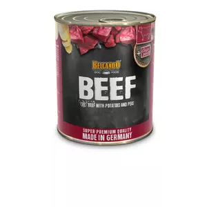 BELCANDO (Белькандо) Яловичина з картоплею та горохом - НОВІ КОНСЕРВИ BELCANDO – якісний німецький продукт, виготовлений із натуральної сировини. Шість унікальних рецептур з великою кількістю м'яса мають у складі ряд цінних компонентів: олія будяка багата жирними кислотами, що покращують кровообіг і харчування тканин; насіння чиа для підтримки травлення, здоров'я шкіри та вовни. У виробництві консервів не використовуються барвники, ароматизатори та консерванти.