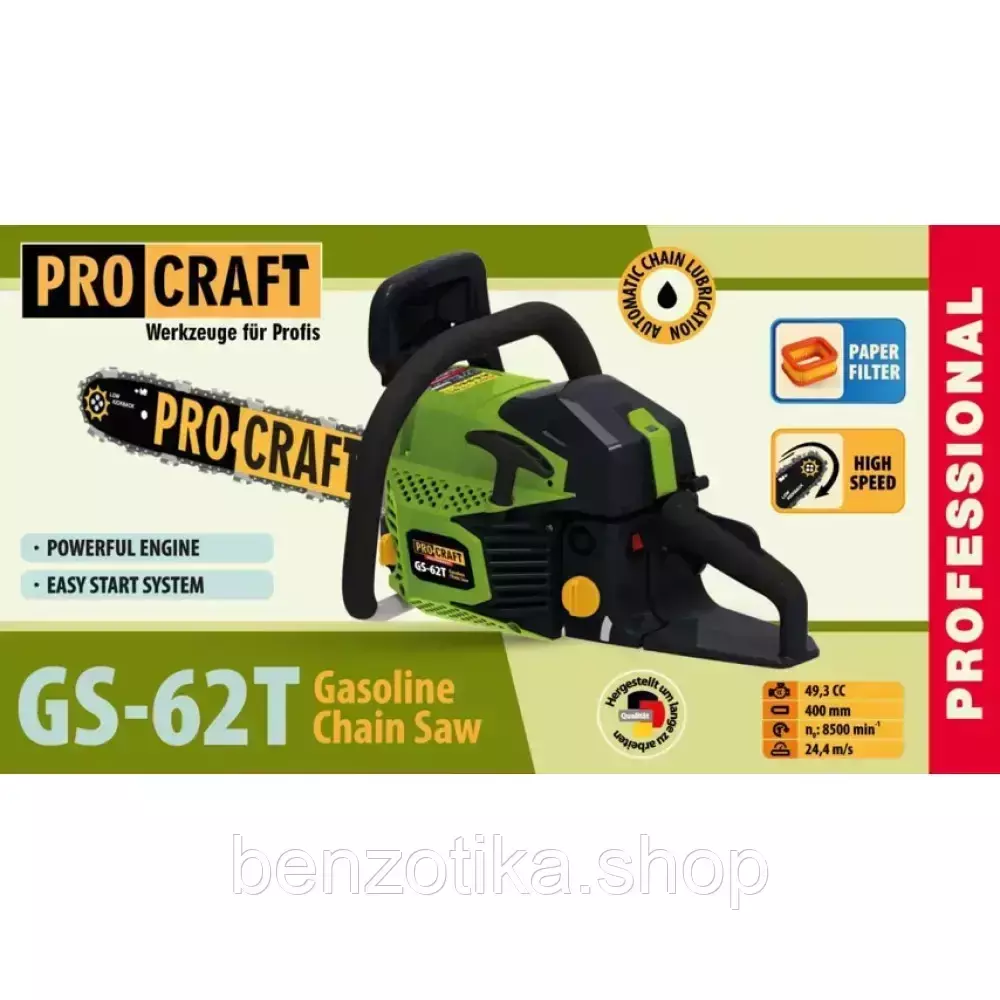 Бензопила Procraft GS-62T — это надёжный инструмент, созданный для