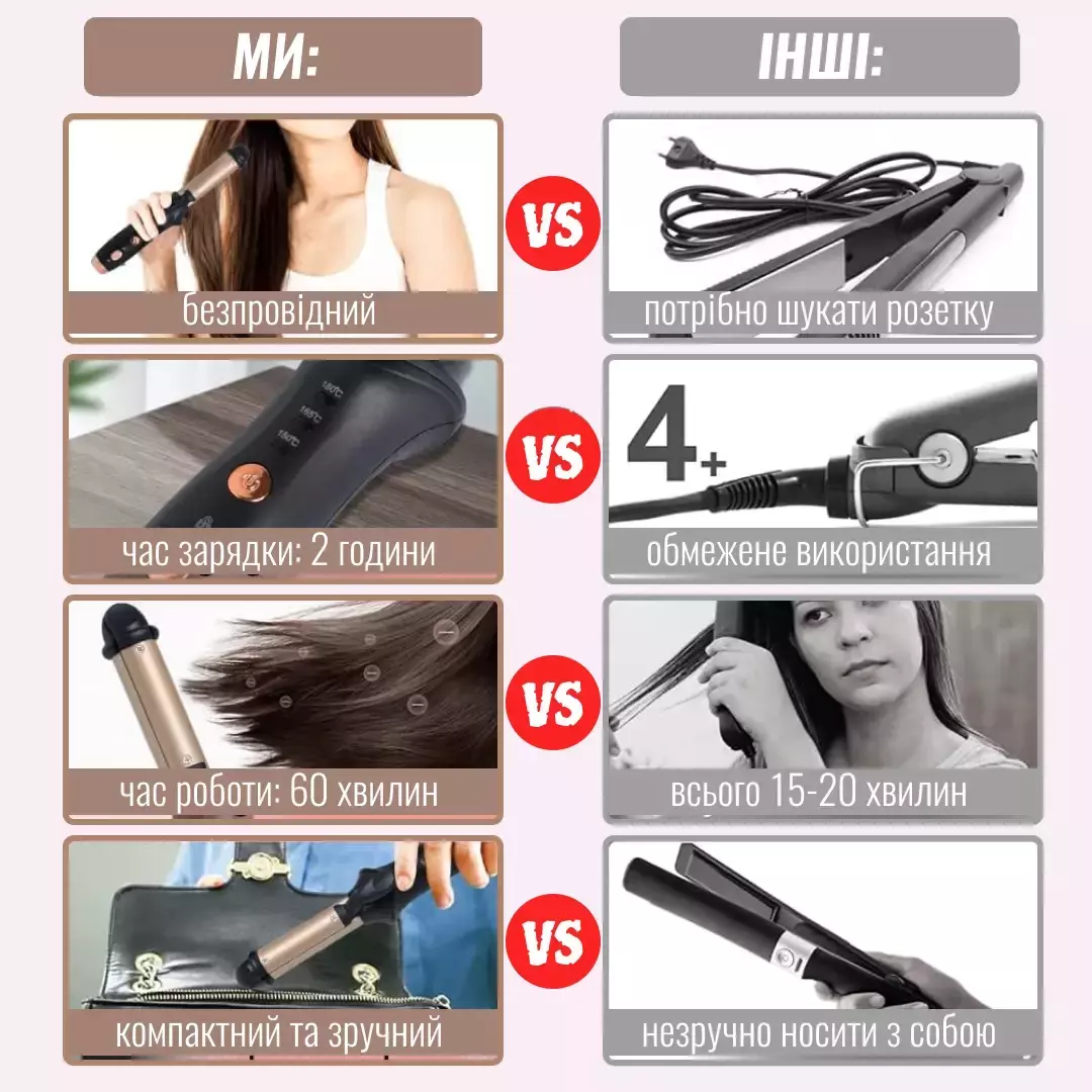 Ищете удобное решение для идеальной прически в дороге или в блэкаут при отсутсвии света? Беспроводная портативная USB плойка для завивки волос Chaier AE-508 — ваш идеальный спутник на такие случаи, а так же для путешествий и активного образа жизни в целом. Эти мини-щипцы для завивки и выпрямления волос оснащены множеством функций, обеспечивающих профессиональный уход за волосами в любое время и в любом месте.