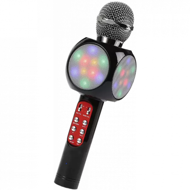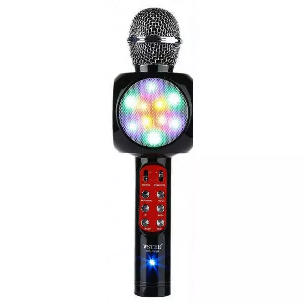 Беспроводной микрофон WS-1816 – это оригинальное устройство объединившее в себе вокальный Bluetooth микрофон и универсальную стерео колонку. Микрофон может стать отличным инструментом для начинающих вокалистов или средством скрасить приятный вечер в компании друзей. Отличительной особенностью данной модели является красочная светодиодная подсветка динамиков (при желании отключается), которая дополнит атмосферу праздника и привлечет внимание к поющему.