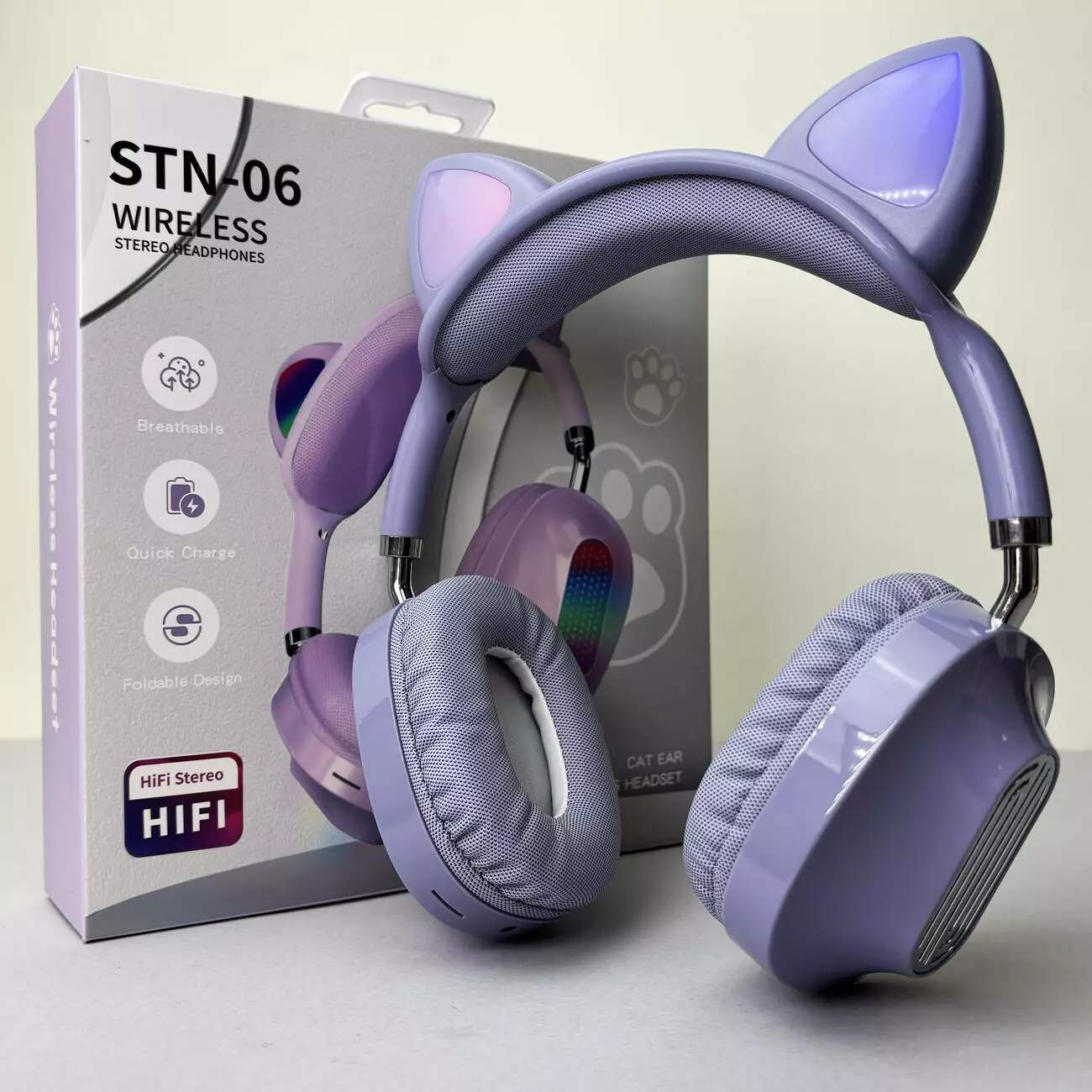 Беспроводные наушники Cat Ear RGB STN06 – отличная модель стильных детских наушников, покоряющих своим качеством и необычным дизайном. В наушники встроена цветная подсветка, что сделает каждое прослушивание любимых песен праздником. Благодаря качественным аккумуляторам, наушники могут работать до 7 часов в режиме прослушивания и в режиме разговора. Также наушники поддерживают microSD карты, что придает значительное преимущество.