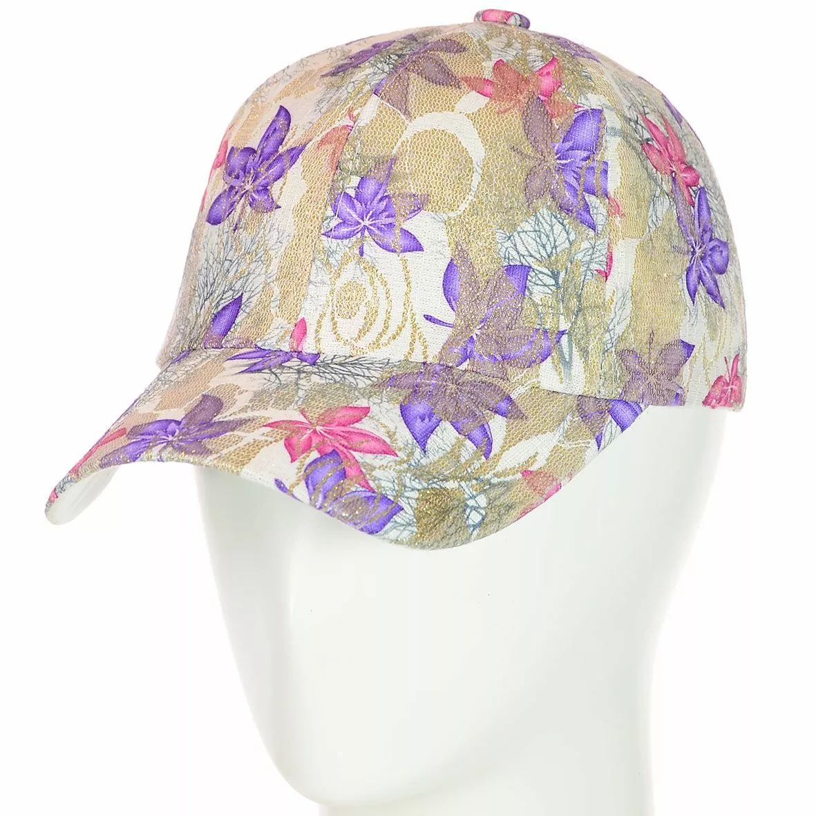 Бейсболка из гипюра, украшена цветочным принтом и